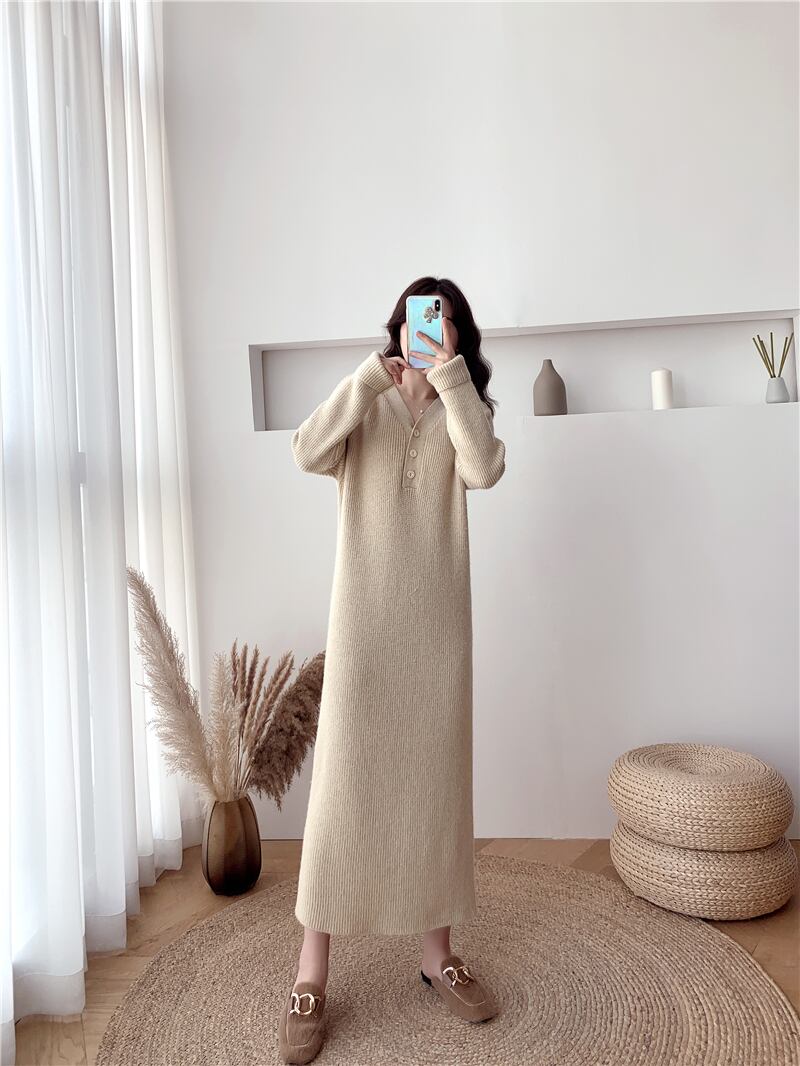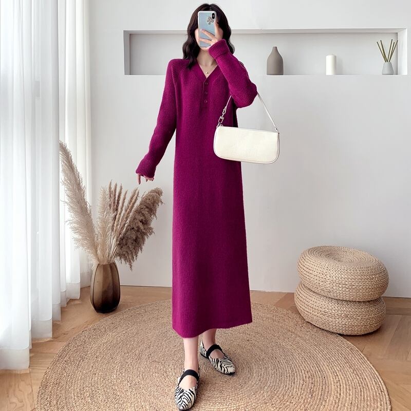 ミッドレングスセーターソフトワックス秋冬ルーズで怠惰なスタイルのデザインニッチストレートニットインナードレス女性 オータム 秋物 ウィンター 冬物 yingd90417823778