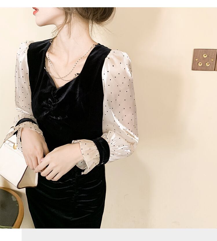 2021年秋新しいクールウィンドレディースハイエンドライトラグジュアリーセクシースプリット水玉メッシュベルベットドレス オータム 秋物 yingd12055743071