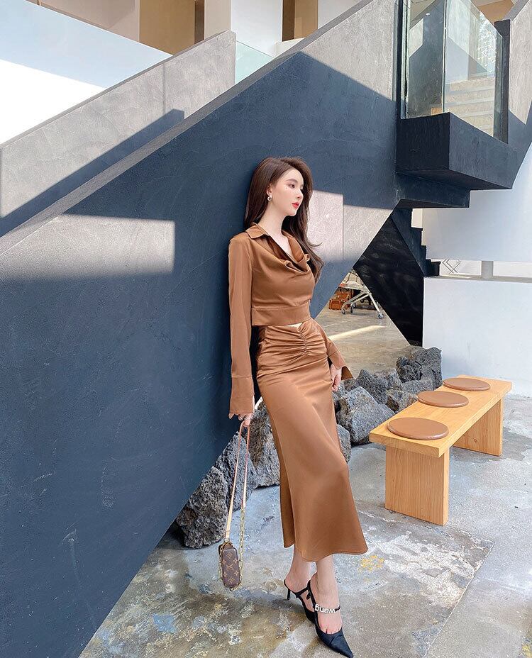 ロイヤルシスターライトおなじみスタイルスーツスカート女性香港スタイルレトロシック気質女神ファンサテントップスカートツーピースセット yingd5646382906