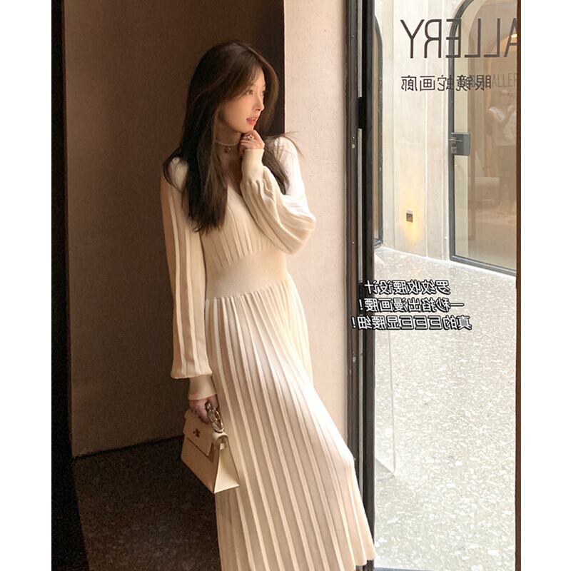 フレンチジェントルスタイルティーブレイクロングオーバーザニーセータードレスウエストスリムセクシーVネックニットドレス秋冬女性 オータム 秋物 ウィンター 冬物 yingd74060215849