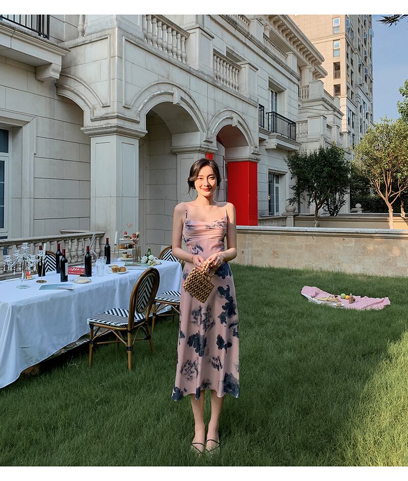 フランスのレトロなサスペンダードレススリムフィットとスリムな気質セクシーな背中の開いたシフォン花柄サスペンダードレス女性の夏 サマー 夏物 yingd96511228733