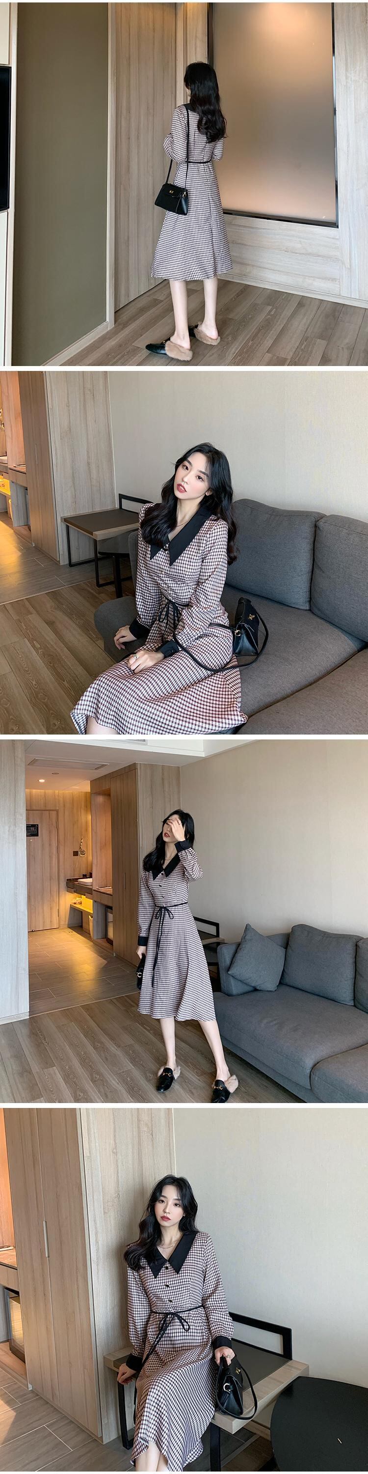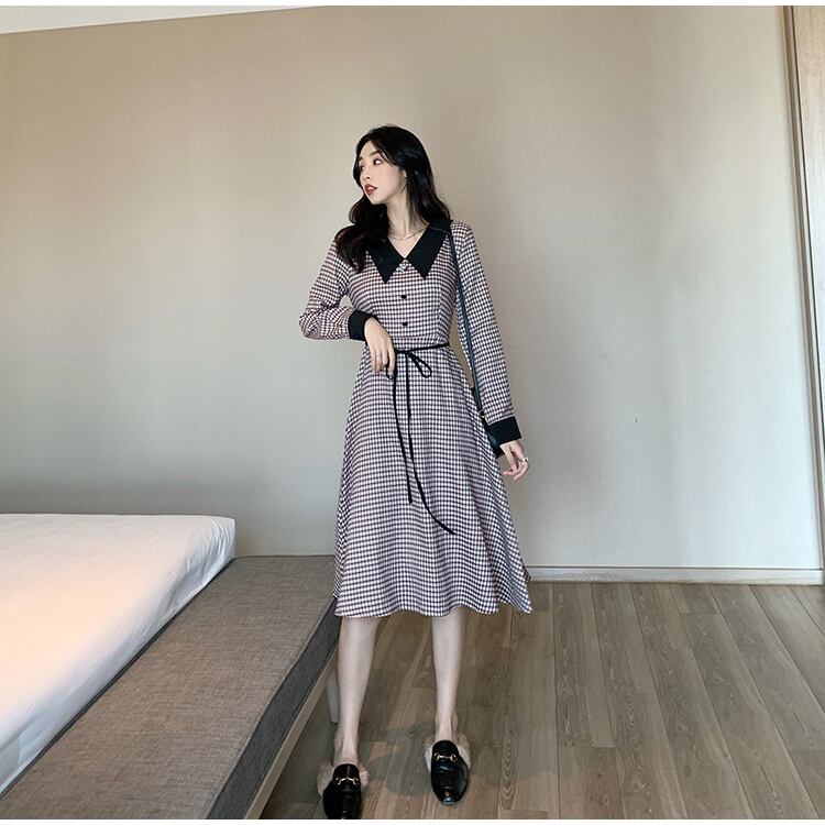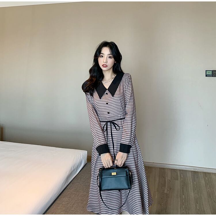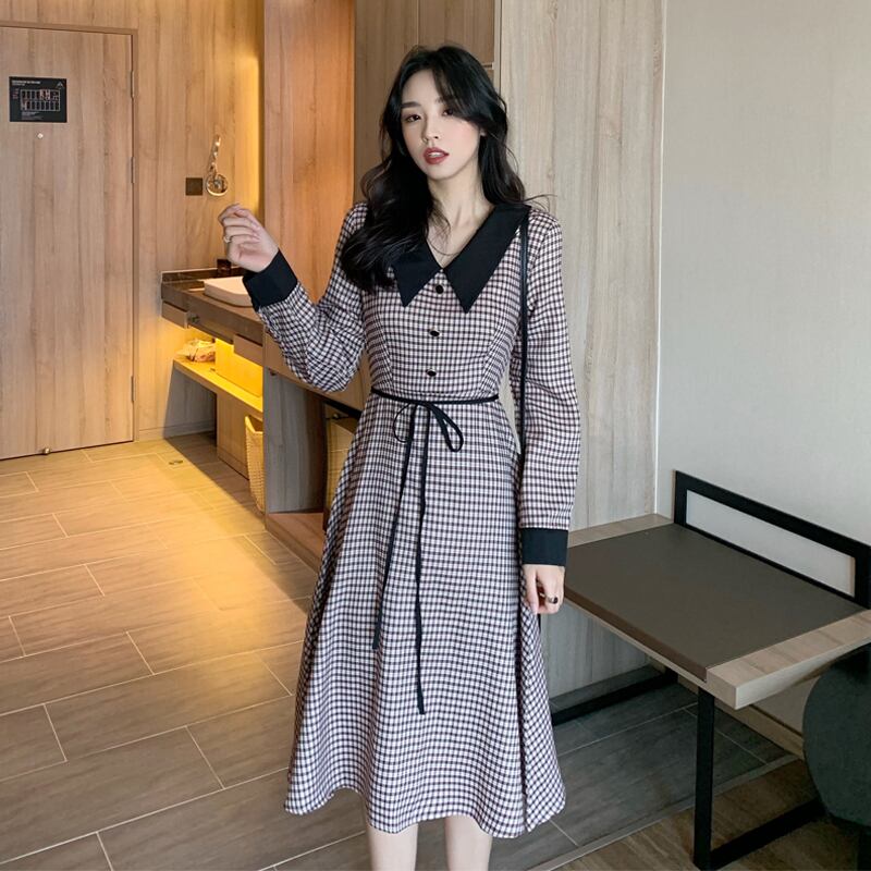 フランスのニッチベルフラワースカートウエストと薄い気質の女神ファン年齢減少人形の襟長袖ドレス女性の春と秋 ロング スプリング 春物 オータム 秋物 フラワーデザイン yingd71237827966
