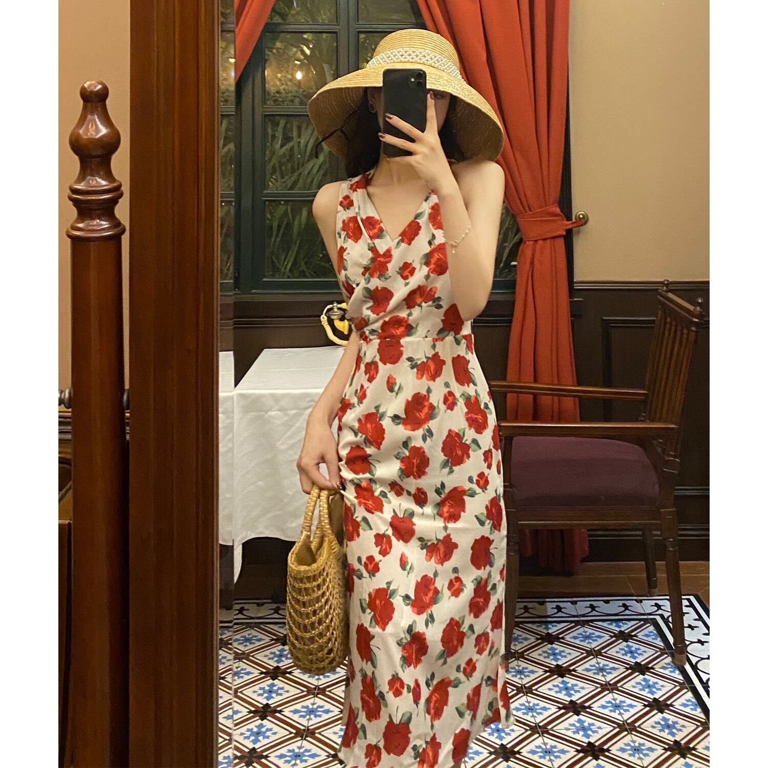フレンチファーストラブスカートレトロジェントルローズロングスカートライトラグジュアリーセレブリティフライドストリートロイヤルシスターライトクックドホルタードレスサマー 夏物 yingd15411041246