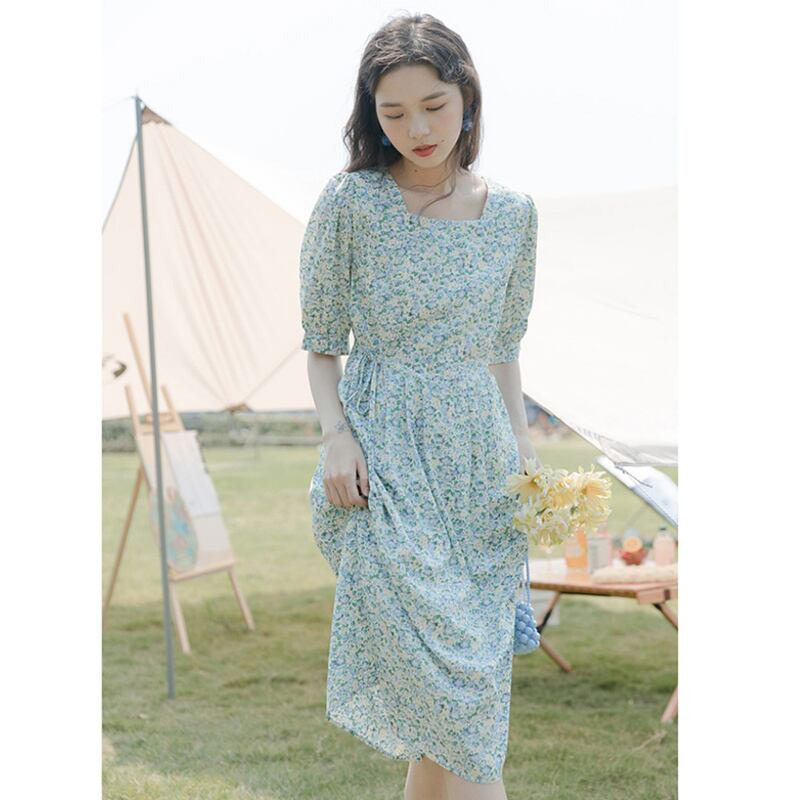 フランスの甘い初恋ドレスレトロ穏やかな風は塩辛いことができます甘い小さな新鮮なウエストシフォン花柄ドレス女性の夏 大人ガーリー スウィート キュート カジュアル サマー 夏物 yingd4840086915