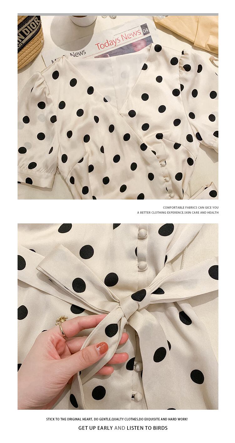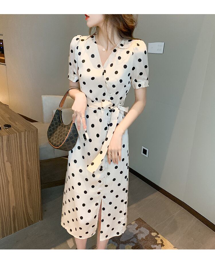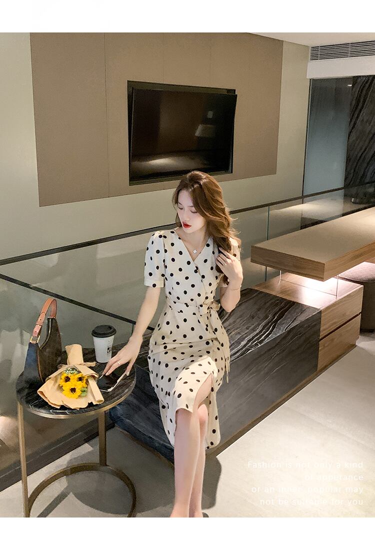 フランスのレトロなヘップバーンスタイルのロングスカート夏ウエストスリム気質女神ファンハイエンド水玉スプリットドレス夏 サマー 夏物 yingd26895669119