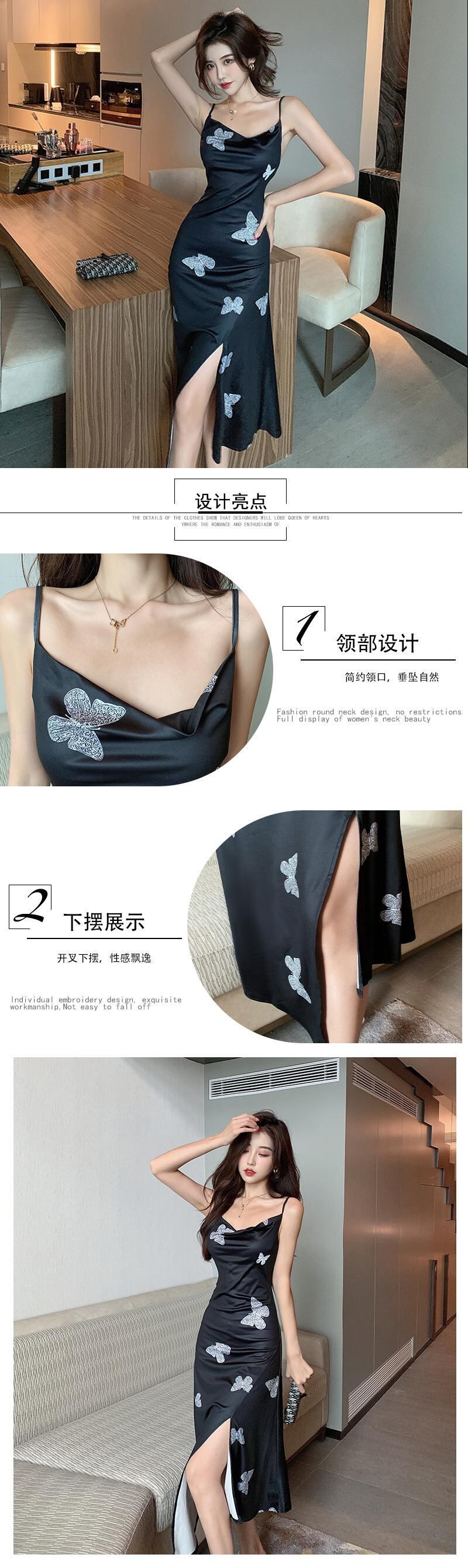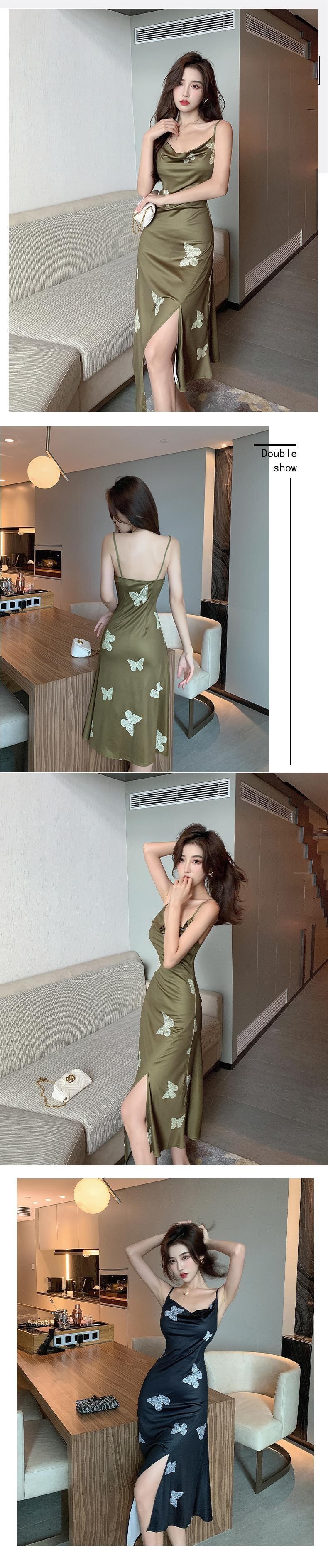 フランスのレトロな甘くてスパイシーなスリングドレススリムフィットと薄い気質セクシーなフェミニンなスイングカラースリットサスペンダースカート 大人ガーリー スウィート キュート カジュアル yingd71511920020