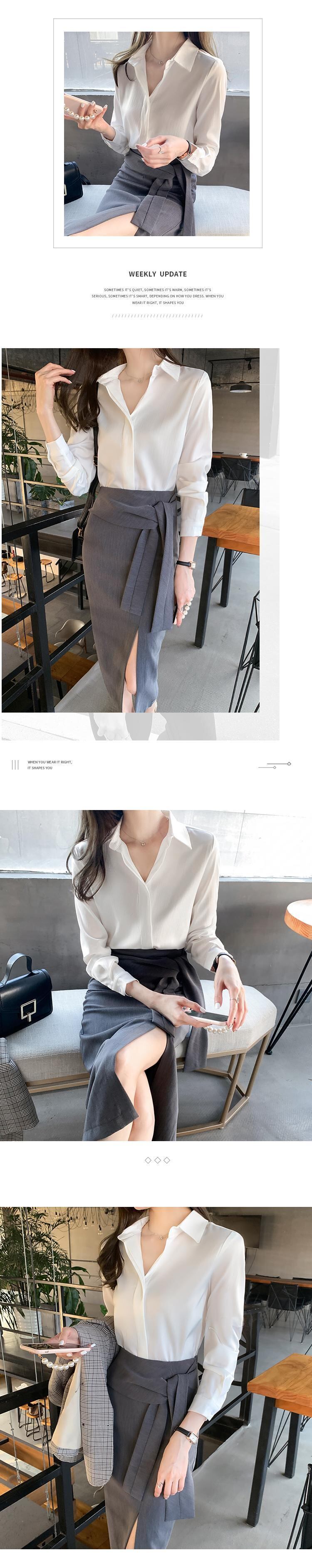 2021年春新しい長袖カジュアルシフォンシャツレディーストップデザインニッチ気質ライトおなじみスタイルシャツ ロング スプリング 春物 yingd83907248415