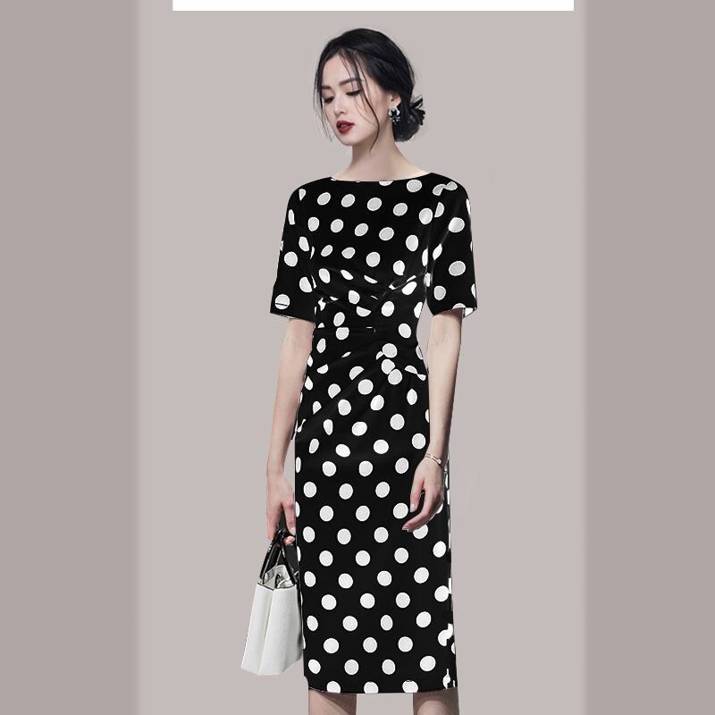 フレンチレトロニッチオーバーザニーロングスカートスリムフィットとスリム気質ロイヤルシスターライトおなじみスタイルバッグヒップ水玉ドレス女性夏 サマー 夏物 yingd56490770698