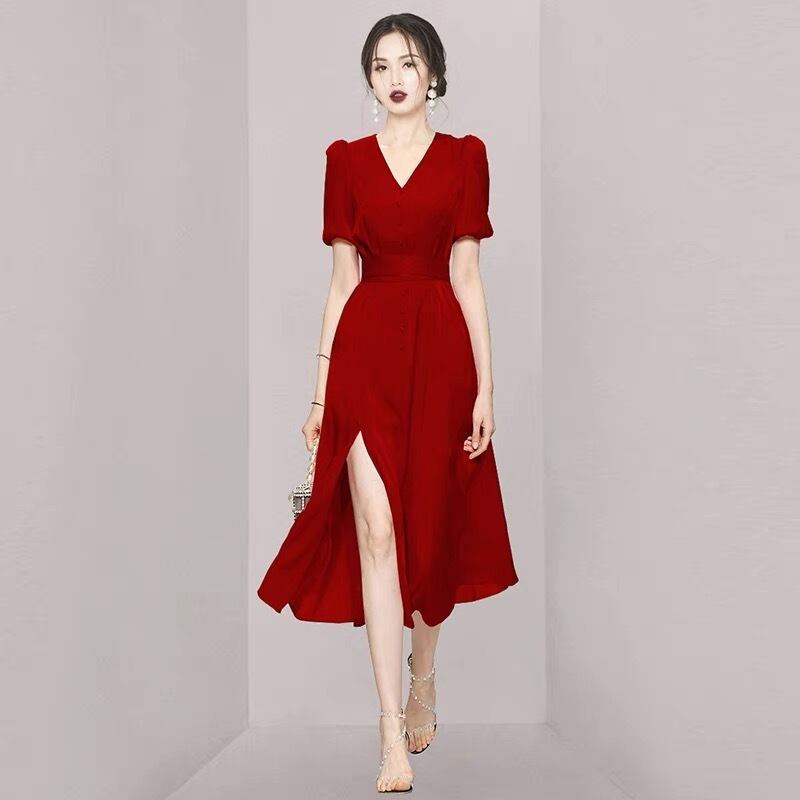 2021年夏の新しいクールなスタイルの婦人服ハイエンドライトラグジュアリーレディースセクシーなVネックメッシュスリットドレスの女性 サマー 夏物 yingd44298658151