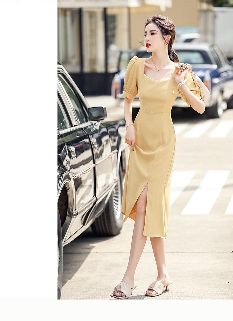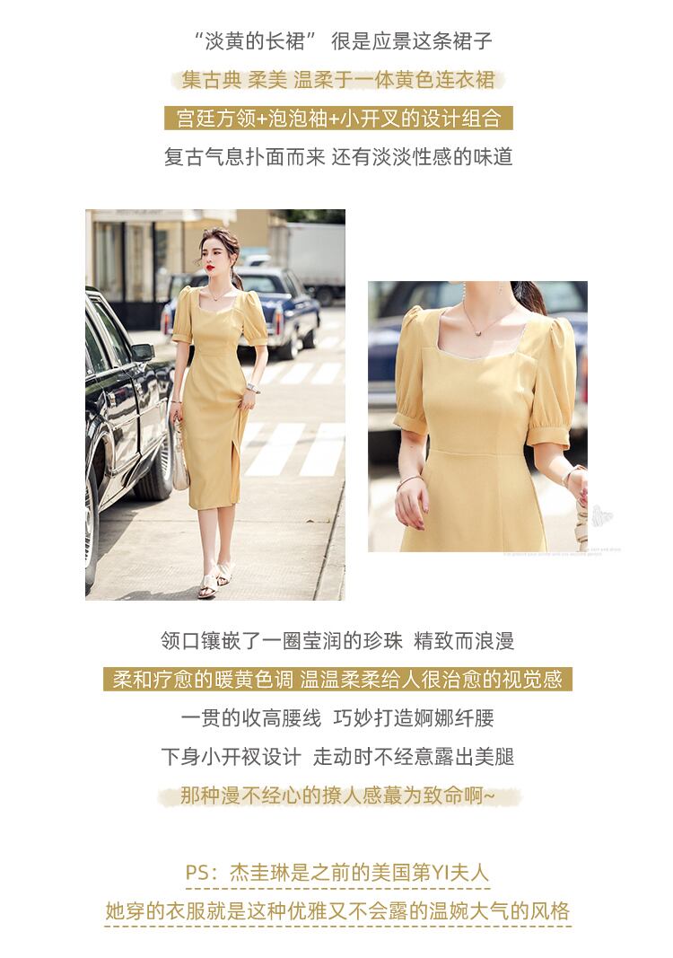 フランスのレトロな冷風ハイエンドライト高級レディース揚げストリートロイヤルシスターライトおなじみのスタイルスクエアカラースプリットドレス女性の夏 サマー 夏物 スクウェア yingd41588463771