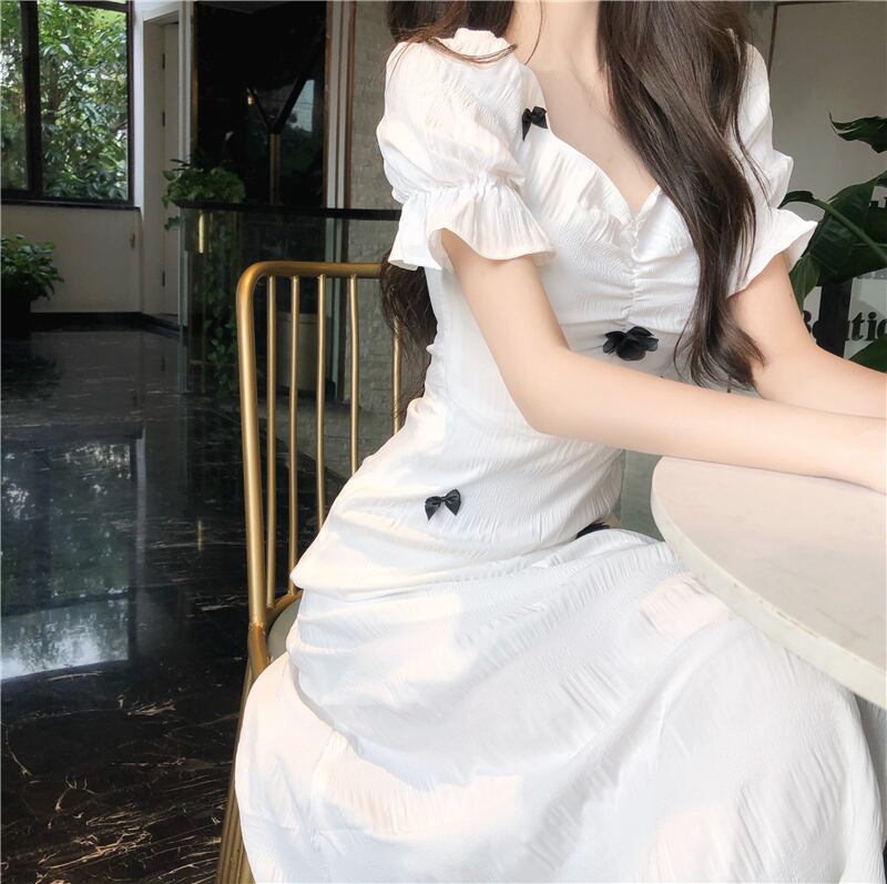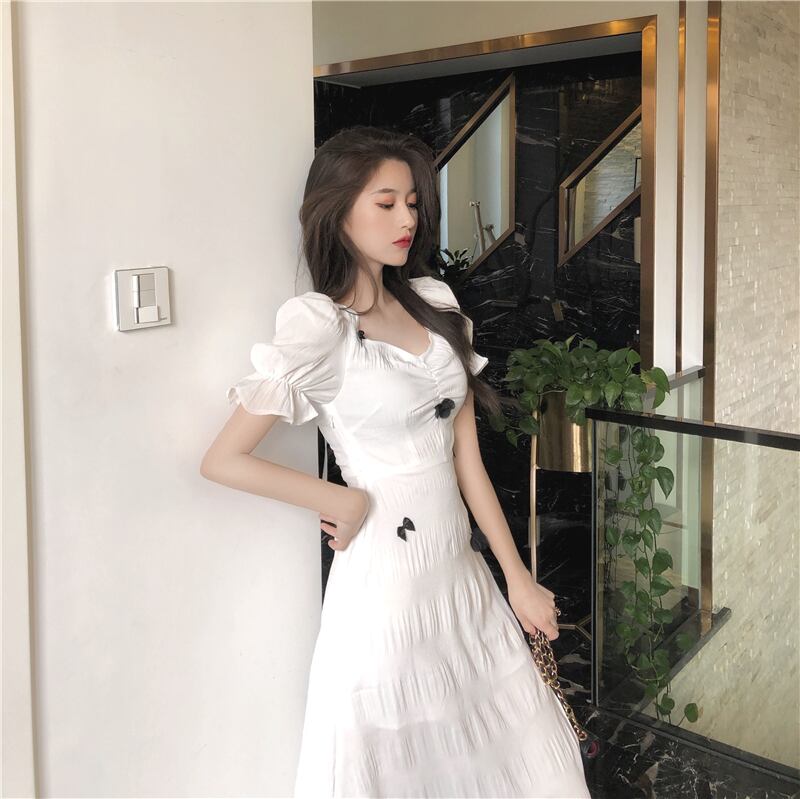 フランスのレトロなヘップバーンドレスは塩辛いまたは甘い気質であることができますウエストは薄いパフスリーブでした穏やかな風のドレス女性の夏 大人ガーリー スウィート キュート カジュアル サマー 夏物 yingd36203927280