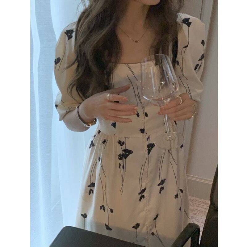 2021年夏の新しいフランスのレトロな優しいスタイルのティーブレイクベルフラワースカートロングスリムウエストフローラルドレス女性 サマー 夏物 花柄 フラワーデザイン yingd86955800088