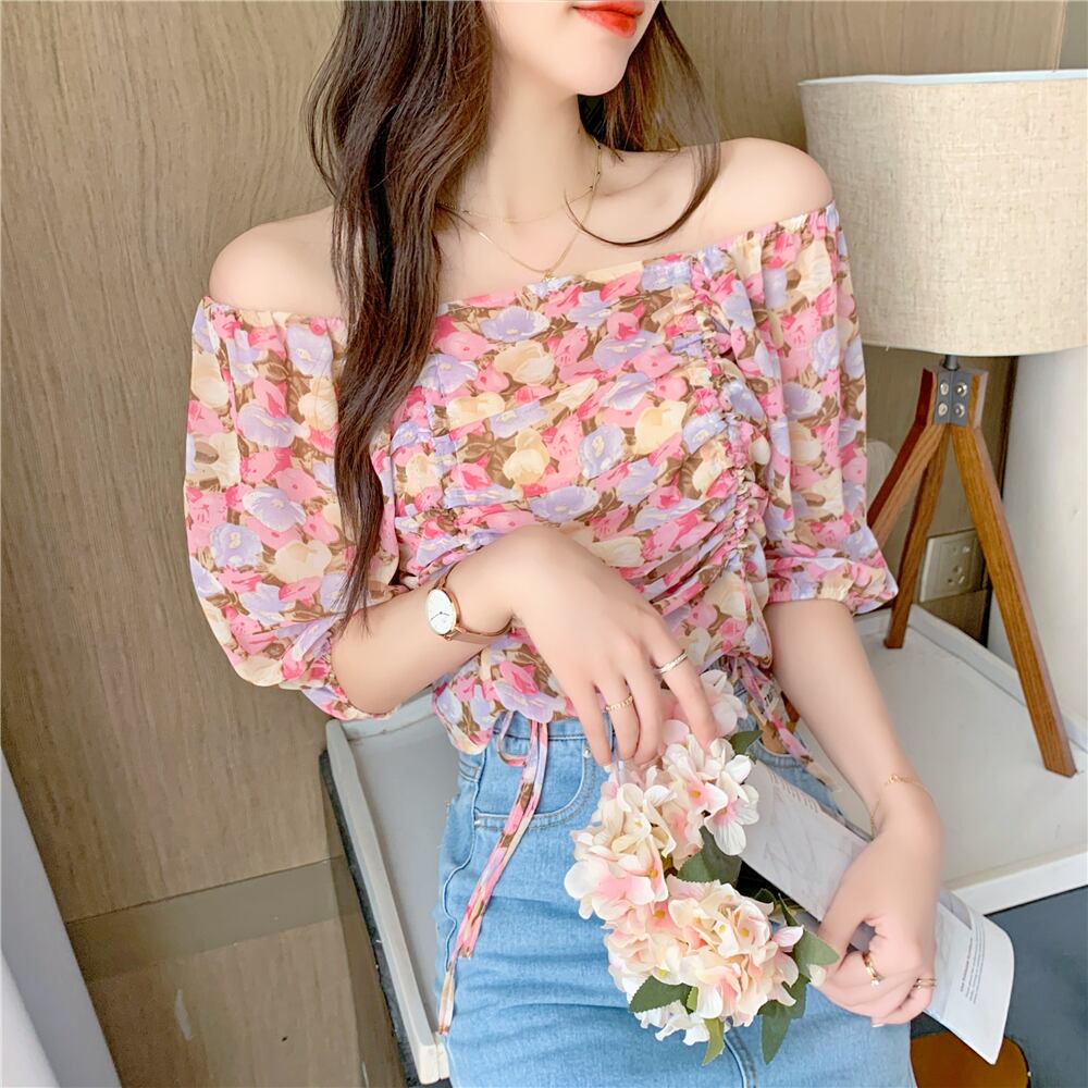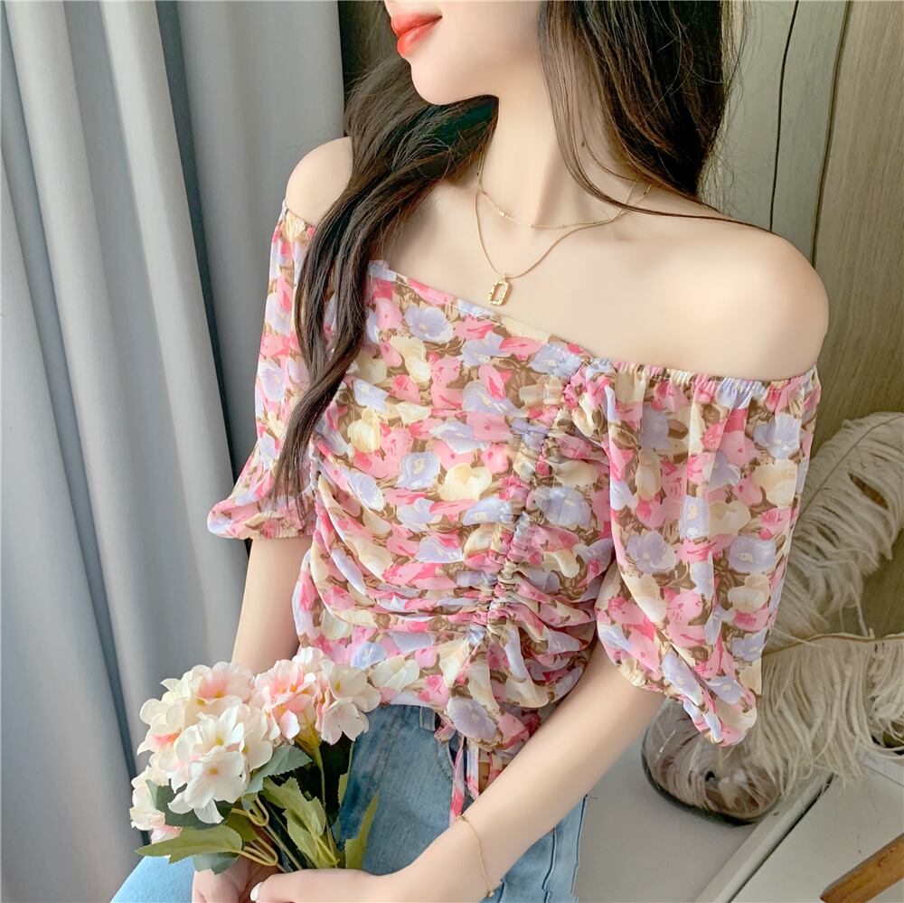 シフォンシャツレディース半袖夏新作フレンチレトロフローラルパフスリーブデザインセンスニッチシャツレディーススモールシャツタイド サマー 夏物 花柄 yingd12892395251