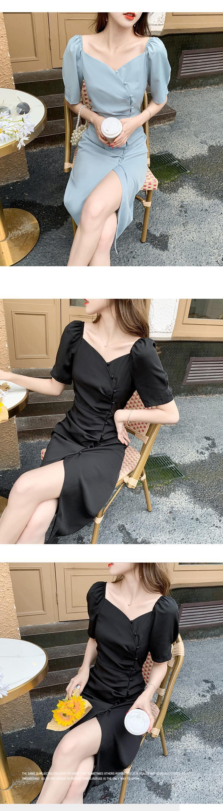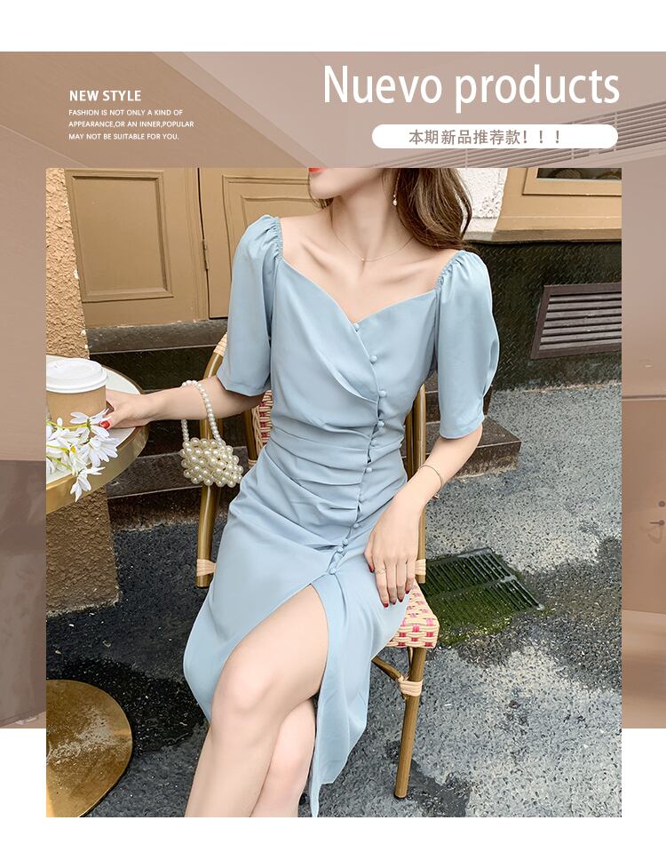 フランスのレトロなデザインのハイエンドウエストウエスト細い気質の陰謀スプリットスカートロイヤルシスターライトおなじみのスタイルのドレス女性の夏 サマー 夏物 yingd18057250835