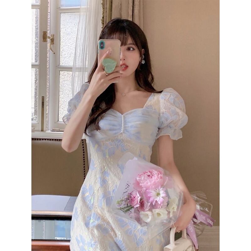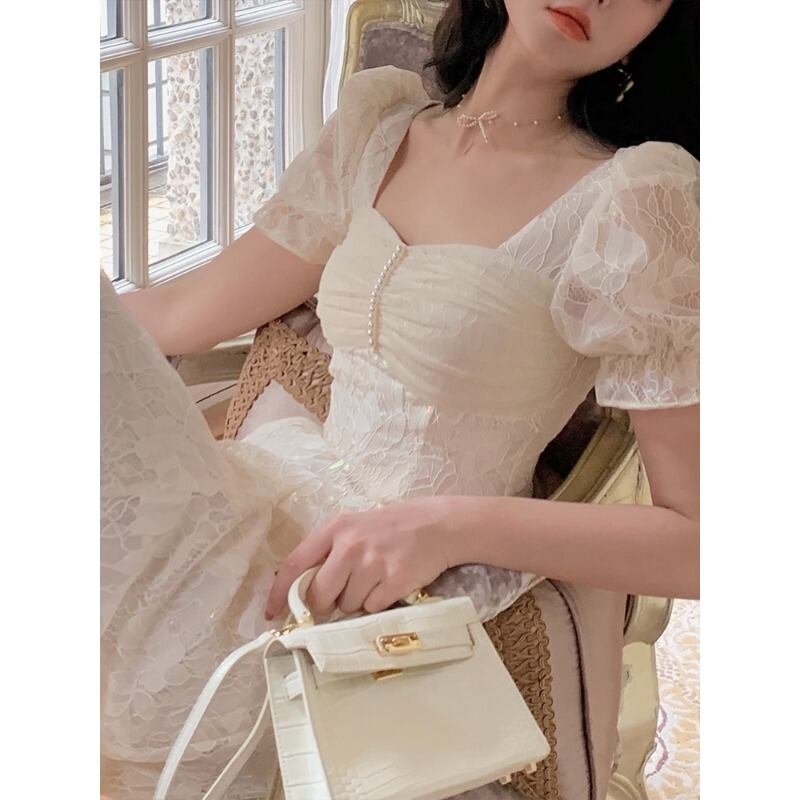 フランスの甘い初恋ドレスレトロ穏やかな風は塩辛くて甘いハイエンドスリムスクエアネックレースドレス女性の夏にすることができます 大人ガーリー スウィート キュート カジュアル サマー 夏物 スクウェア yingd37487391259