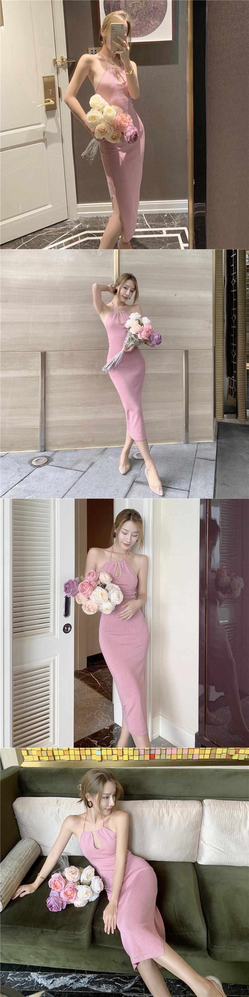 フランスのレトロな気質の女性らしさセクシーなタイトフィットヒップスカートシックなデザインホルターネックスリットドレス女性の夏 サマー 夏物 yingd49050384116