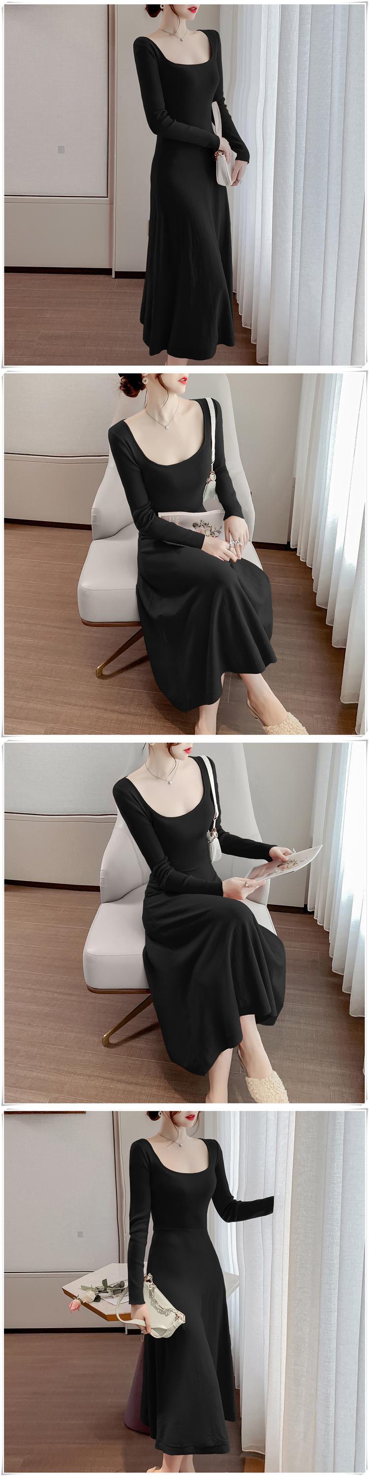 フランスのレトロなスクエアネックのロングドレスは、薄くて高品質の女神ファン青州スタイルの長袖ニットドレスの女性の秋と冬です オータム 秋物 ウィンター 冬物 スクウェア yingd82365080506