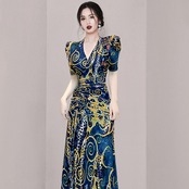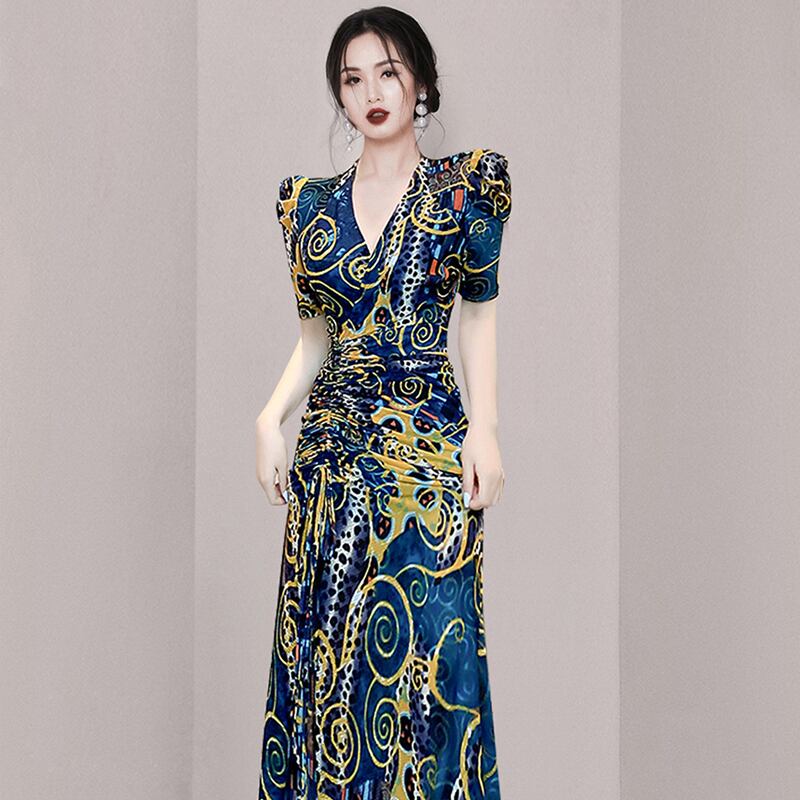 フランスのレトロな冷風女性の高品質のスリムな痩身デザインプリーツセクシーなスリットドレス女性の夏 サマー 夏物 yingd16230017717