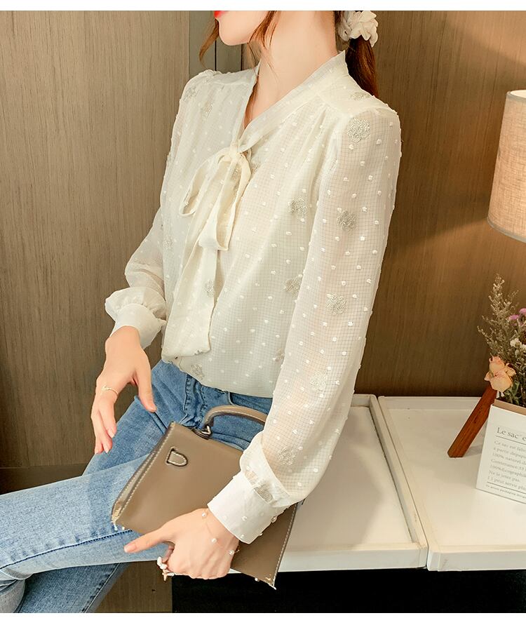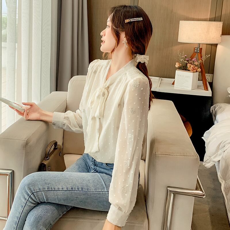 2020年秋新バージョンルーズ長袖シフォンシャツレディースデザインセンスニッチスウィート&ウエスタンスタイルボトミングシャツ ロング 大人ガーリー キュート カジュアル オータム 秋物 yingd98833129360
