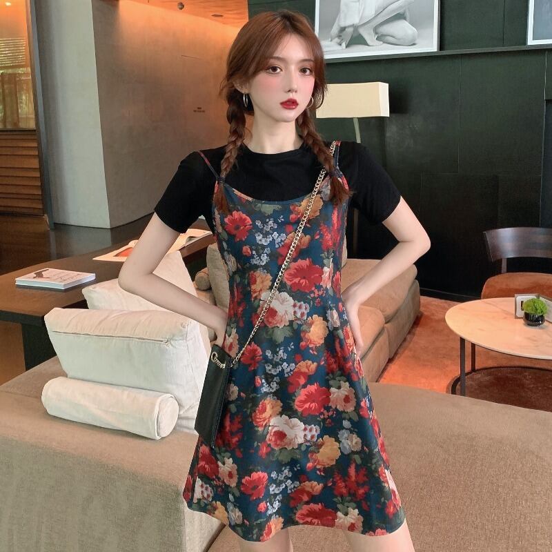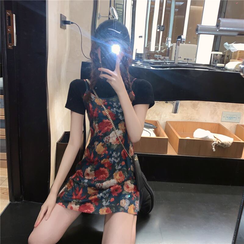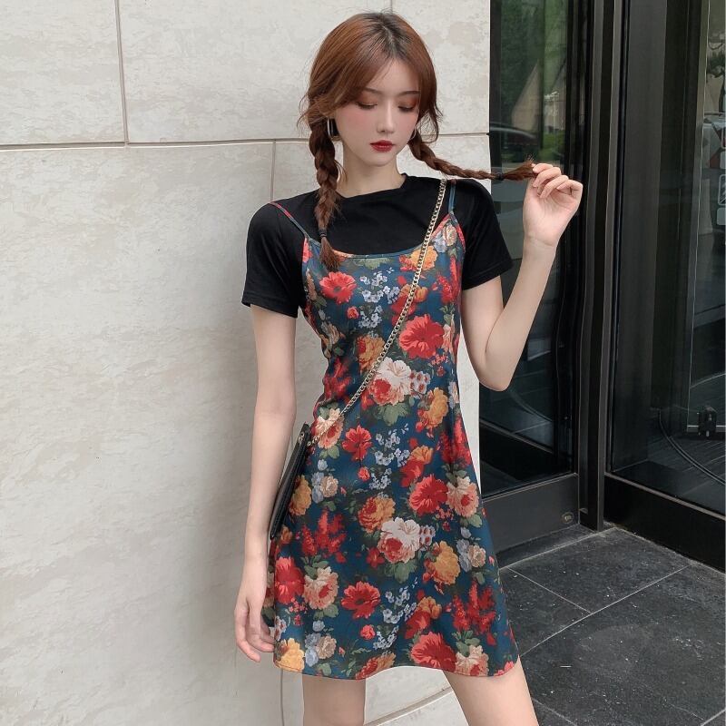 スーツスカートレディース2020新しいフレンチレトロヘップバーンライトとウエスタンスタイルの年齢を減らすTシャツサスペンダースカートツーピースセット yingd15913895754