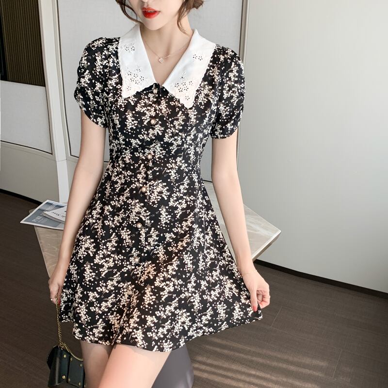 フランスのレトロなヘップバーン花柄ドレス2020新しい夏のドレス気質ウエストスリムシフォン花柄ドレス女性 サマー 夏物 yingd10207393278
