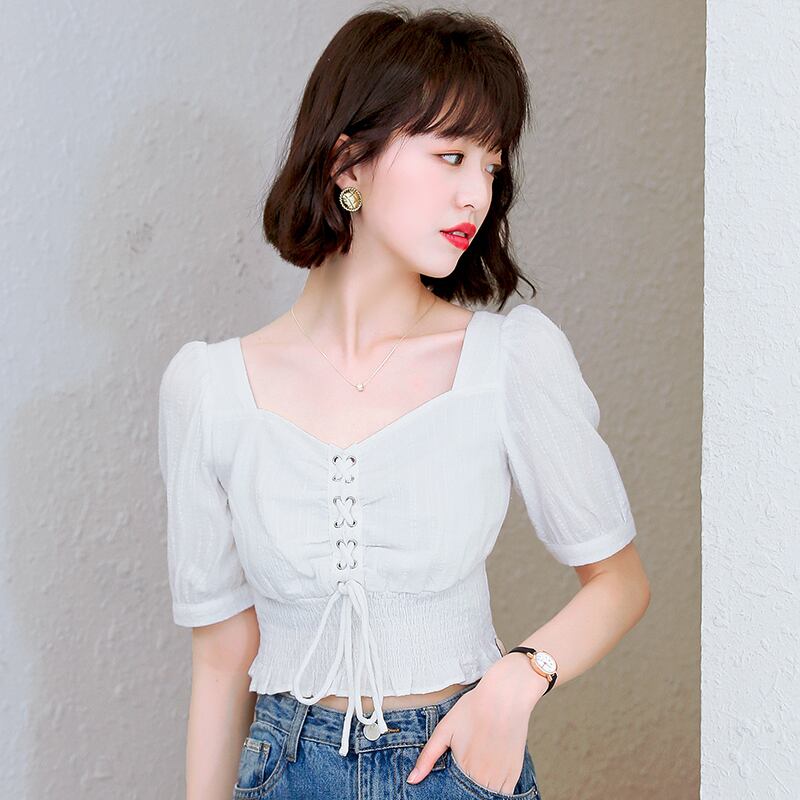 サマードレス2021新しいフレンチレトロスクエアネックパフスリーブショートシャツレディースデザインセンスウエストウエストスモールシャツ 夏物 スクウェア yingd72607686212
