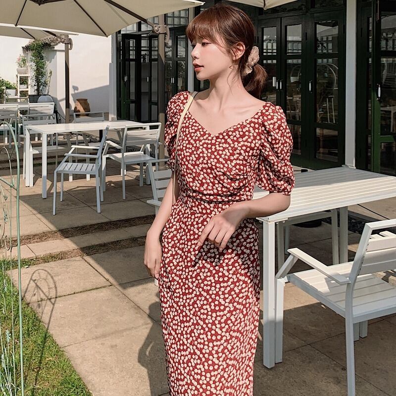 フランスのレトロな優しいスタイルの花柄のドレス女性の夏のドレス2020新しい気質の女神ファンウエストスリムロングスカート サマー 夏物 yingd33742582268