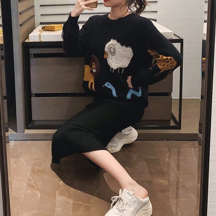 2019初秋新ネットレッド気質セータースカートツーピースセットトレンディスリムウエスタンスタイルニットスーツスカート女性 オータム 秋物 yingd44354262803