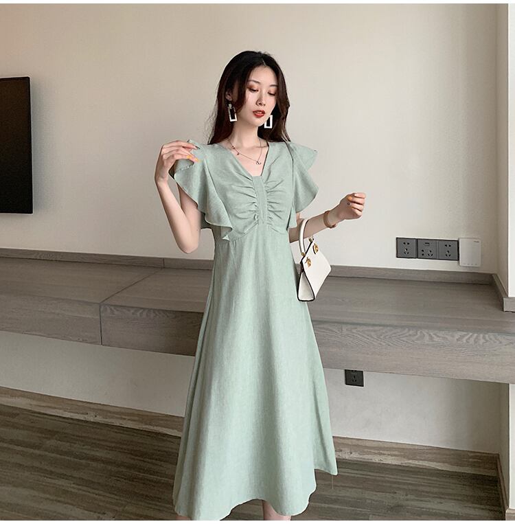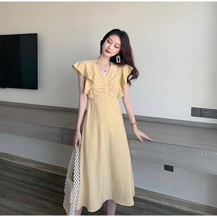 スカートの女性の2020年夏の新しいフランスのレトロな香港スタイルの気質ウエストウエストスリムな優しい風のドレス女性の蓮の葉 サマー 夏物 yingd19008762715