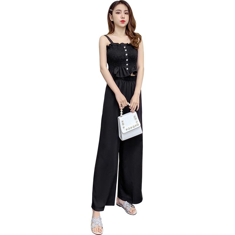 2019夏の新しいフレンチニッチツーピーススーツは非常に妖精のサスペンダートップワイドレッグパンツ遊び心のある洋風スーツ女性の夏 サマー 夏物 yingd93007023322