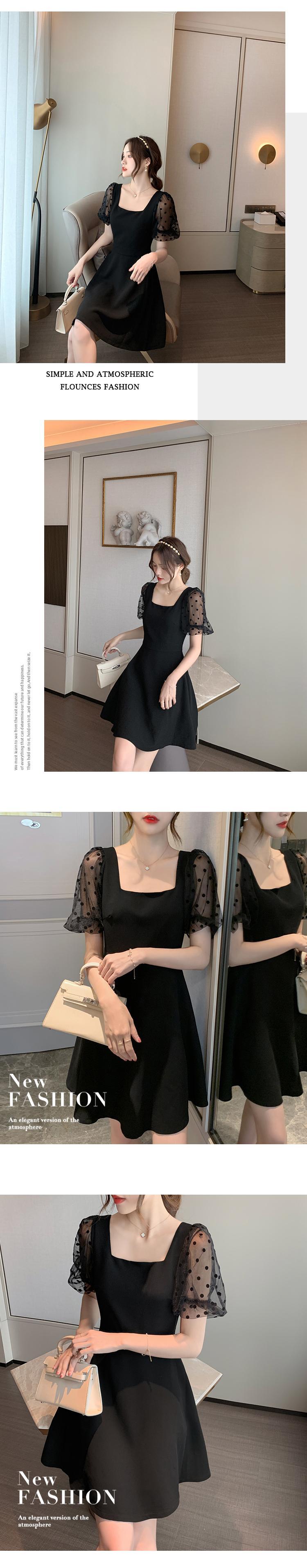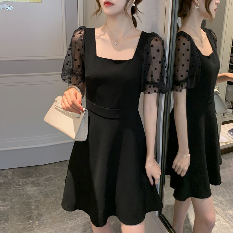 フレンチレトロヘップバーンスタイルリトルブラックドレス気質ウエストは薄いメッシュのパフスリーブ注意深いマシンドレス女性の夏でした サマー 夏物 yingd39105033738