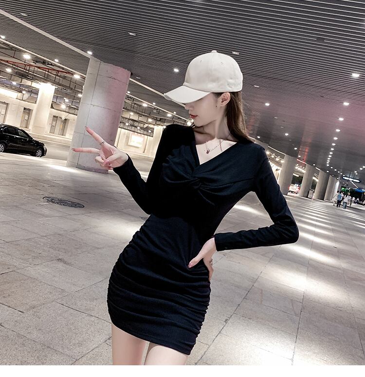 2020年秋新しいフランスのレトロな気質ウエスト痩身セクシー注意マシンVネックヒップドレス女性 オータム 秋物 yingd41717825407