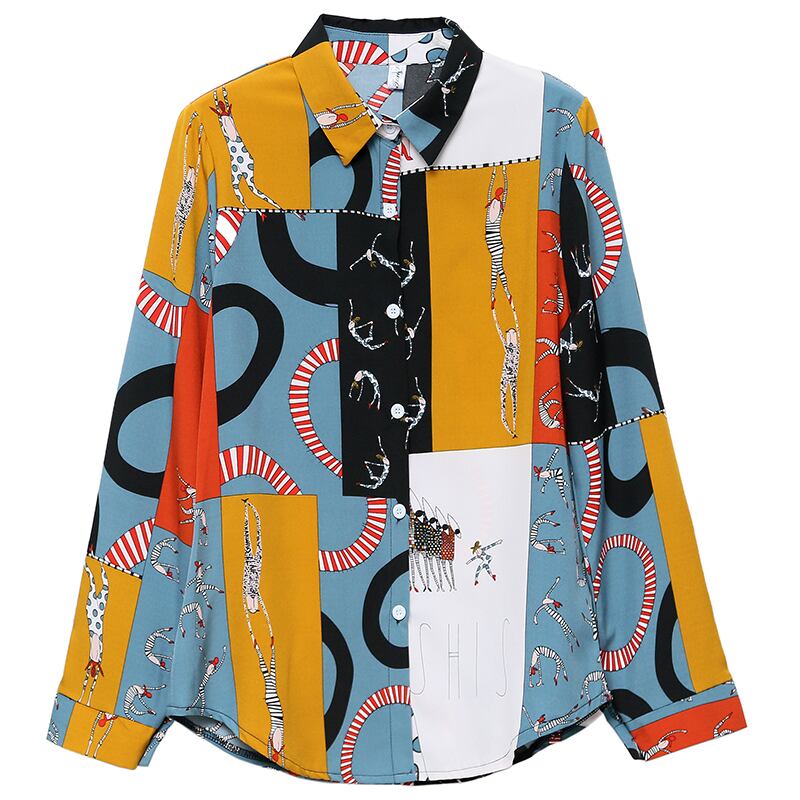 2020年秋新しいレトロな香港スタイルの長袖プリントシャツレディースシャツデザインセンスニッチウエスタンスタイルシャツ女性 ロング オータム 秋物 yingd23675503365