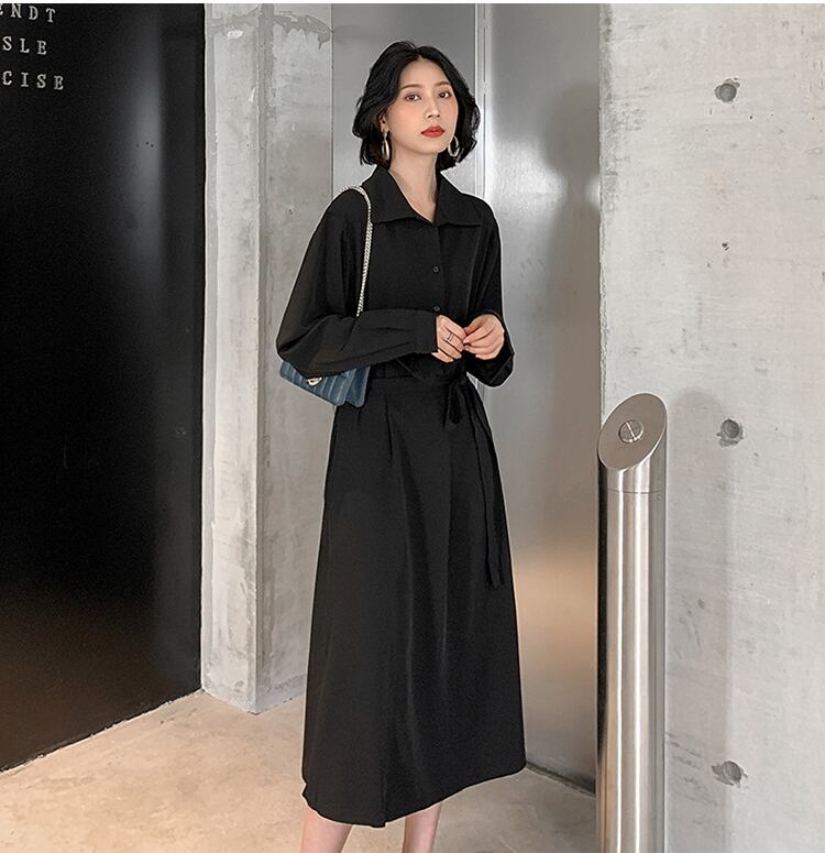 長袖シャツドレス女性の2020年初秋新気性軽くて大人っぽいスタイルのミドル丈シャツスカート女性のデザインセンス ロング オータム 秋物 yingd52773880800