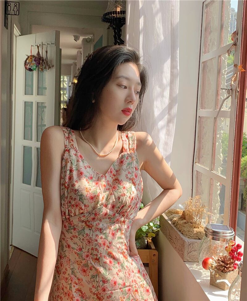 フランスのレトロなサスペンダースカート女性2021年夏新しい涼しい風ハイエンドセクシーなスプリットフローラルサスペンダードレス サマー 夏物 花柄 yingd7912366925