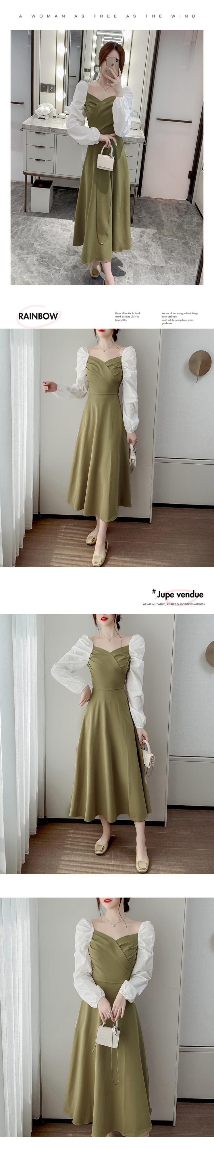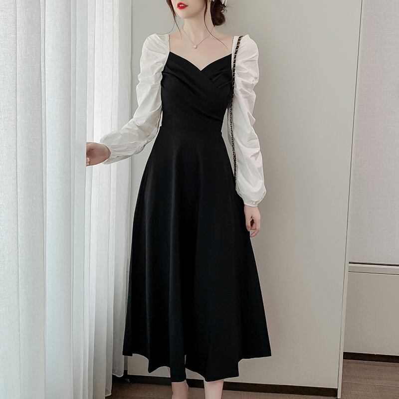 秋の新作レディースフレンチレトロデザインスカートライトおなじみスタイルウエスタンスタイルウエストウエスト長袖ワンピースレディース ロング オータム 秋物 yingd96216994076