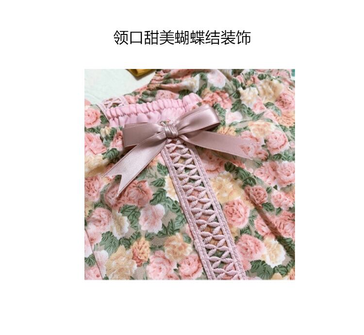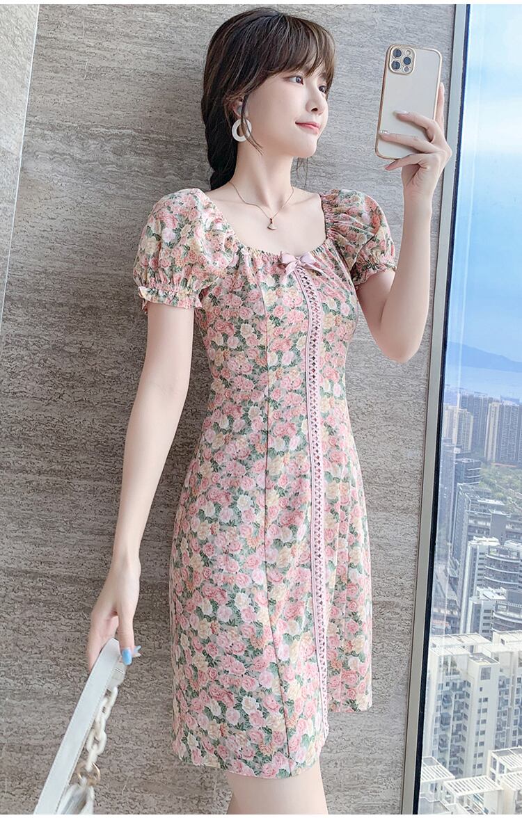 フランスのレトロなベルフラワースカート初恋小人ウエストは細い気質バブルスリーブティーブレイク花柄ドレス女性夏 サマー 夏物 フラワーデザイン yingd73327907226