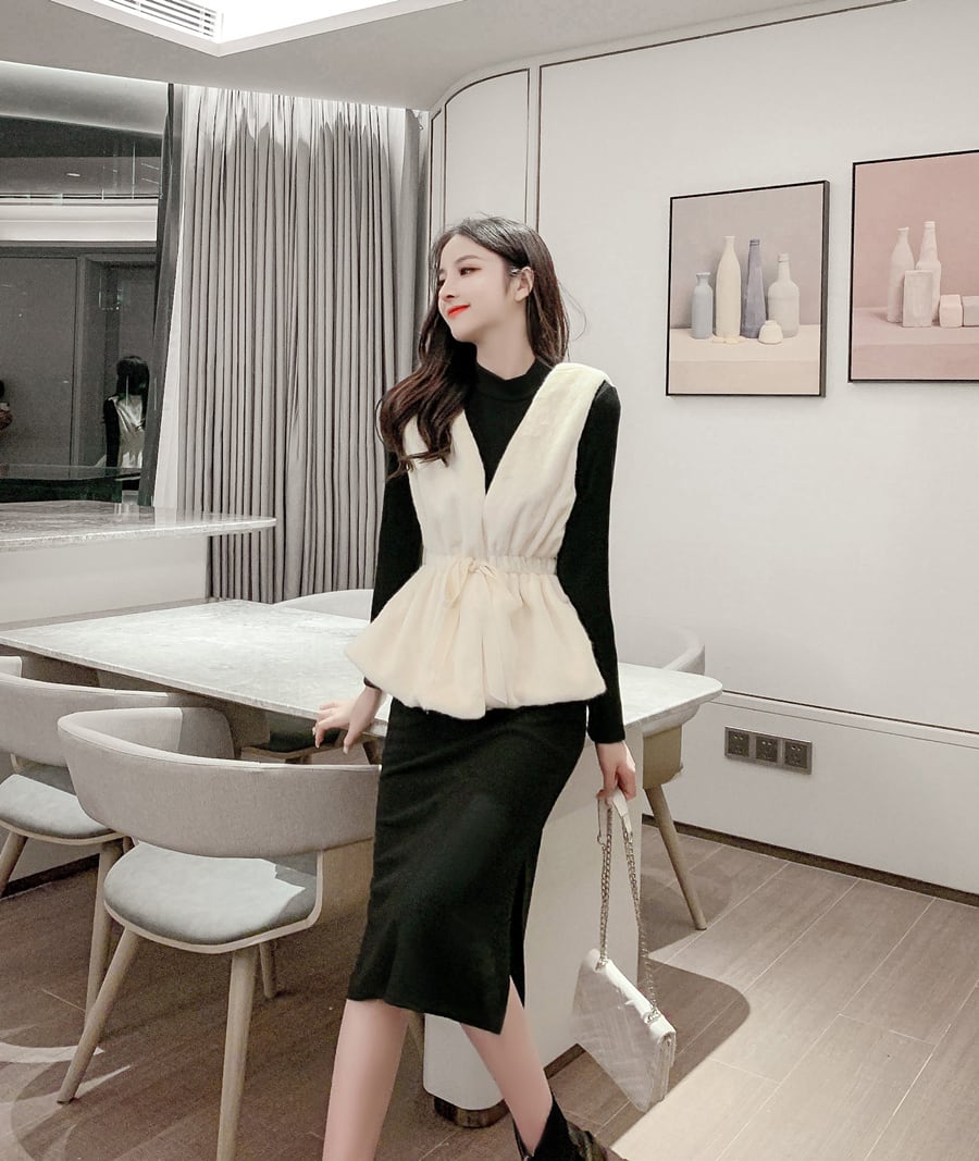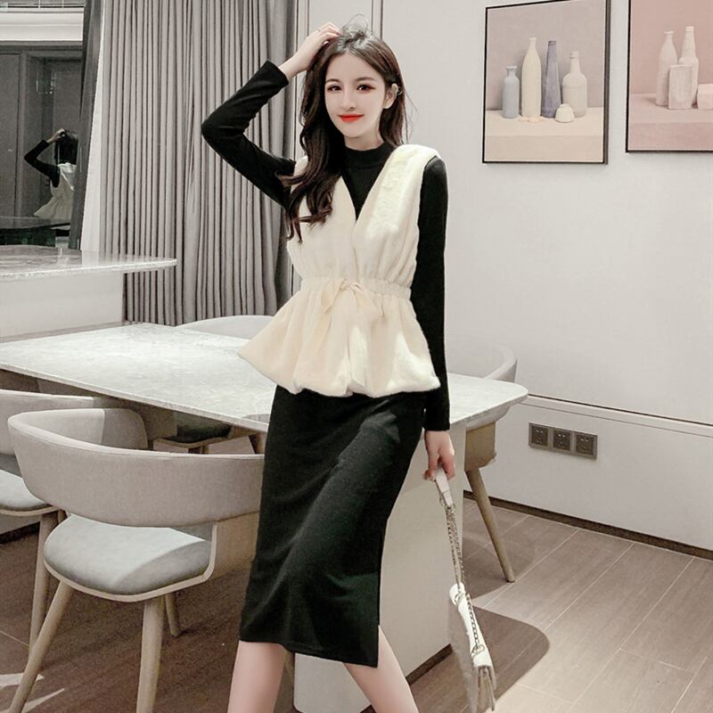 2020年秋冬新作ウエストウエスト細身気質軽高級レディースぬいぐるみベストドレスツーピーススーツレディース オータム 秋物 ウィンター 冬物 yingd18053847639