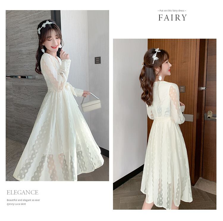 フランスのニッチな甘い初恋の妖精のスカートロングスカートは薄くて気性の高い軽い成熟した風のレースのドレス女性の秋のドレス 大人ガーリー スウィート キュート カジュアル オータム 秋物 yingd69039482803