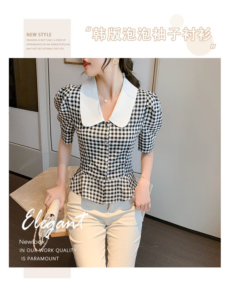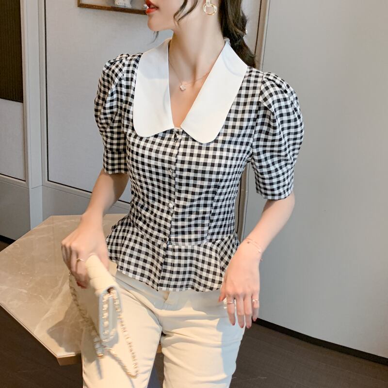 2020年夏の新作フレンチレトロチェック柄パフスリーブシャツレディースデザインセンスニッチ気質シフォンシャツトップ サマー 夏物 yingd48730675901