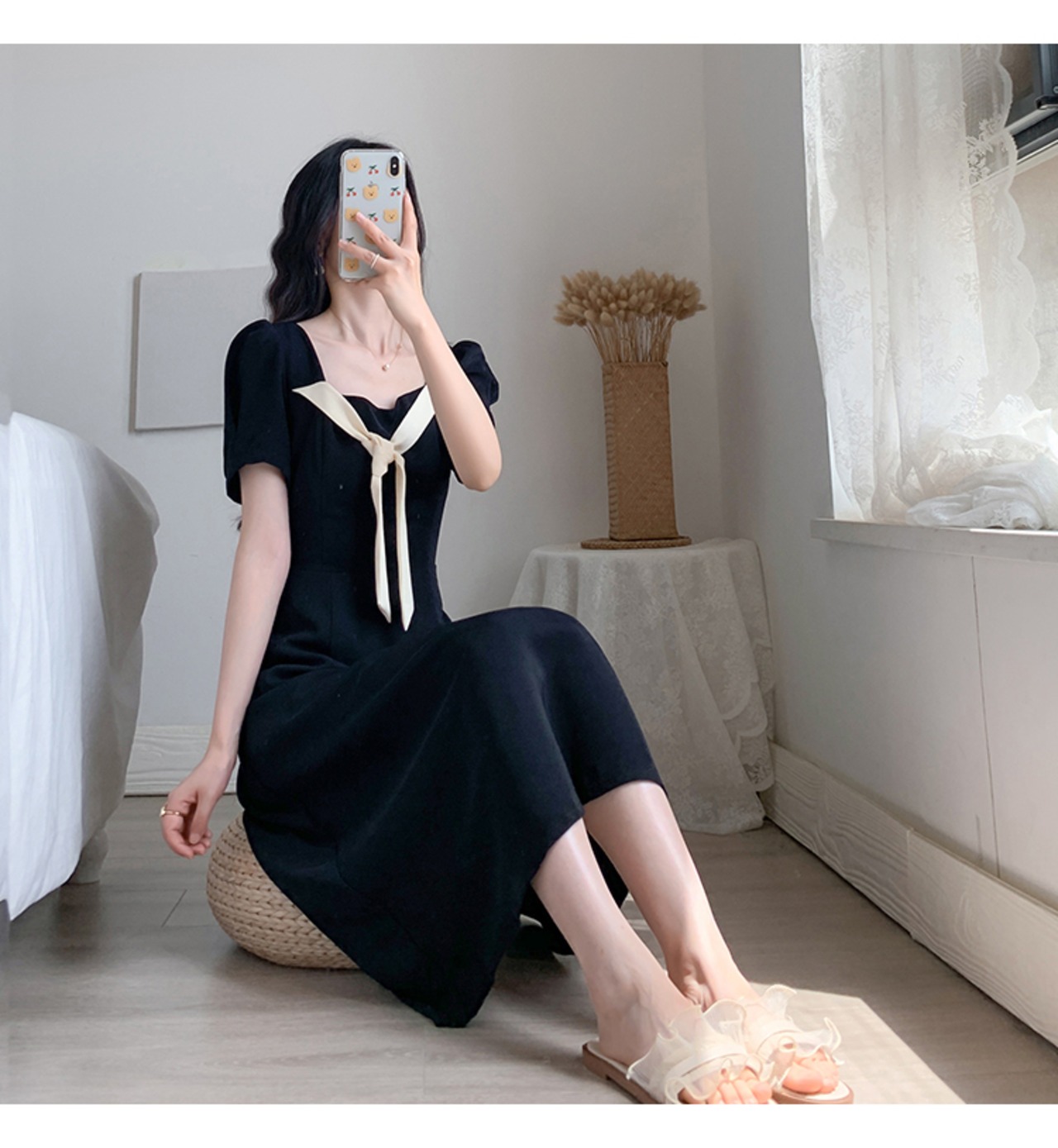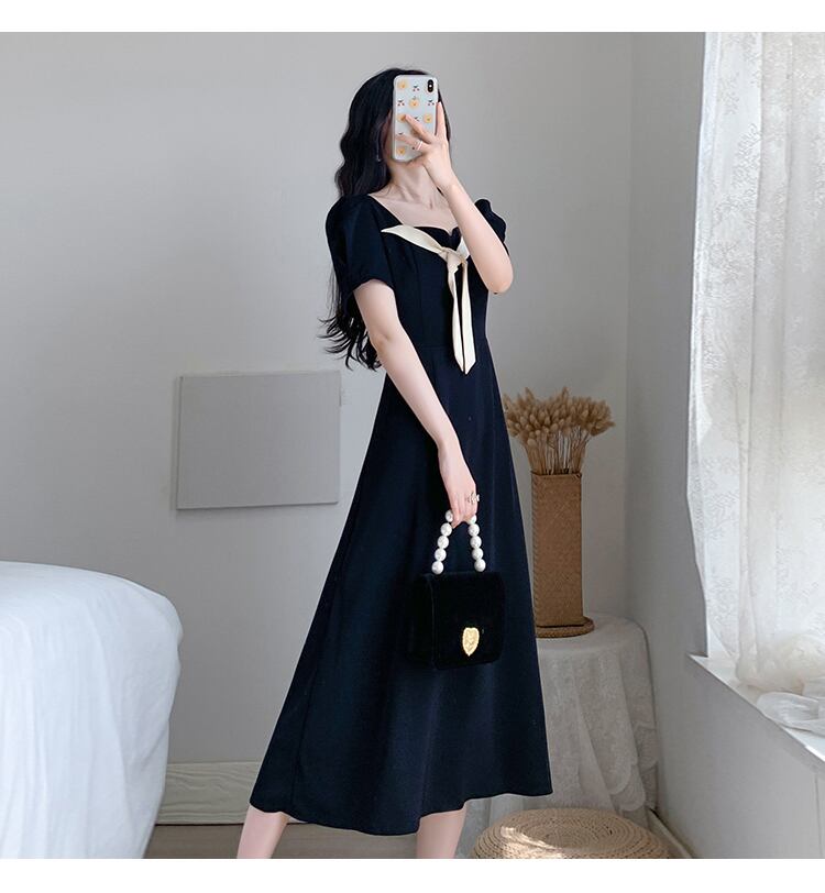 フランスのレトロなスクエアネックのロングドレスは、薄く、高品質で、軽くて馴染みのあるウエスト丈のドレス、女性のサマードレス2020 new 夏物 スクウェア yingd83253738635