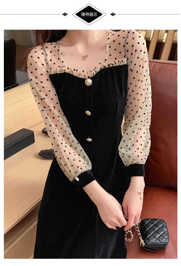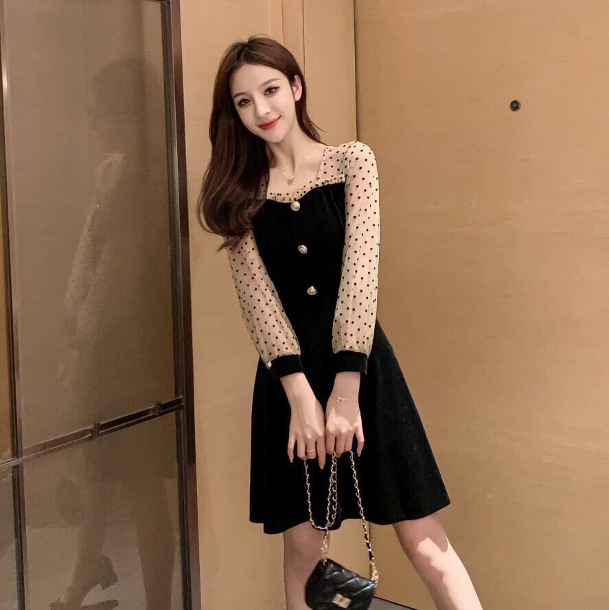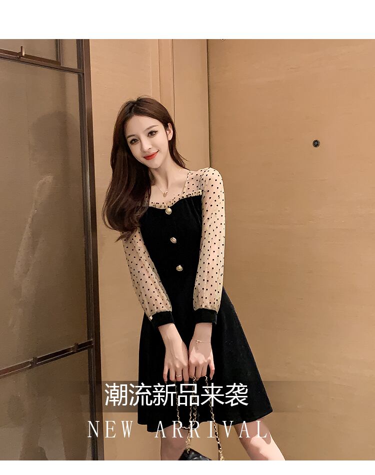 2020年春新気性女神ファンボトミングスカートウエストスリムレトロ水玉メッシュステッチドレスメス スプリング 春物 yingd86687268882