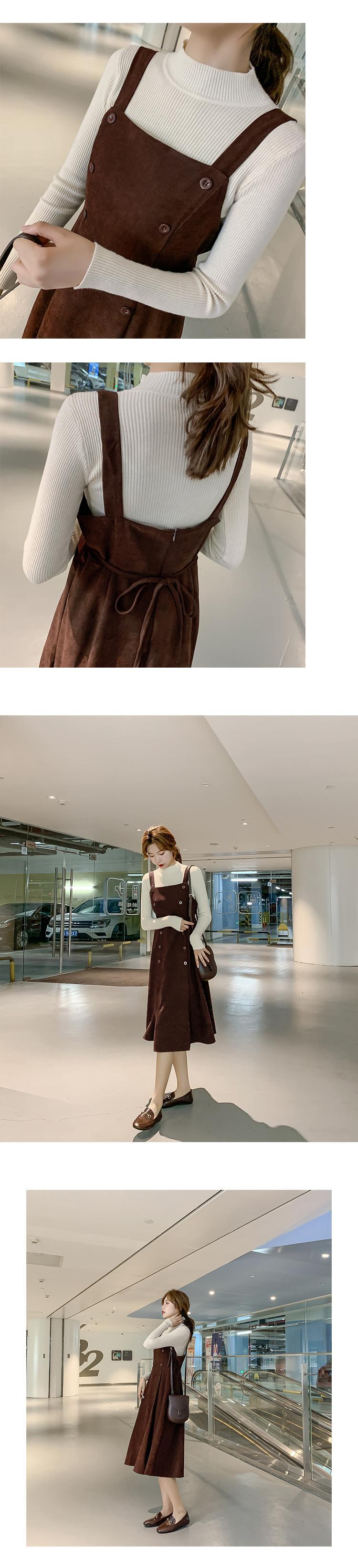 色:コーヒーカラーストラップドレス,アプリコットセーター,コーヒー色のセーター,黒いセーター