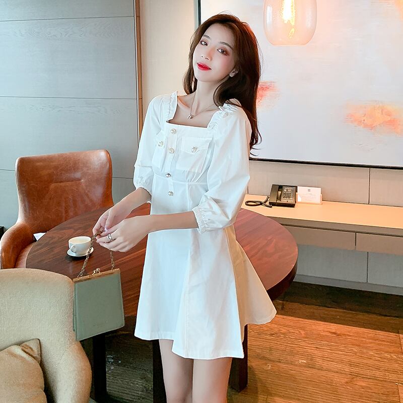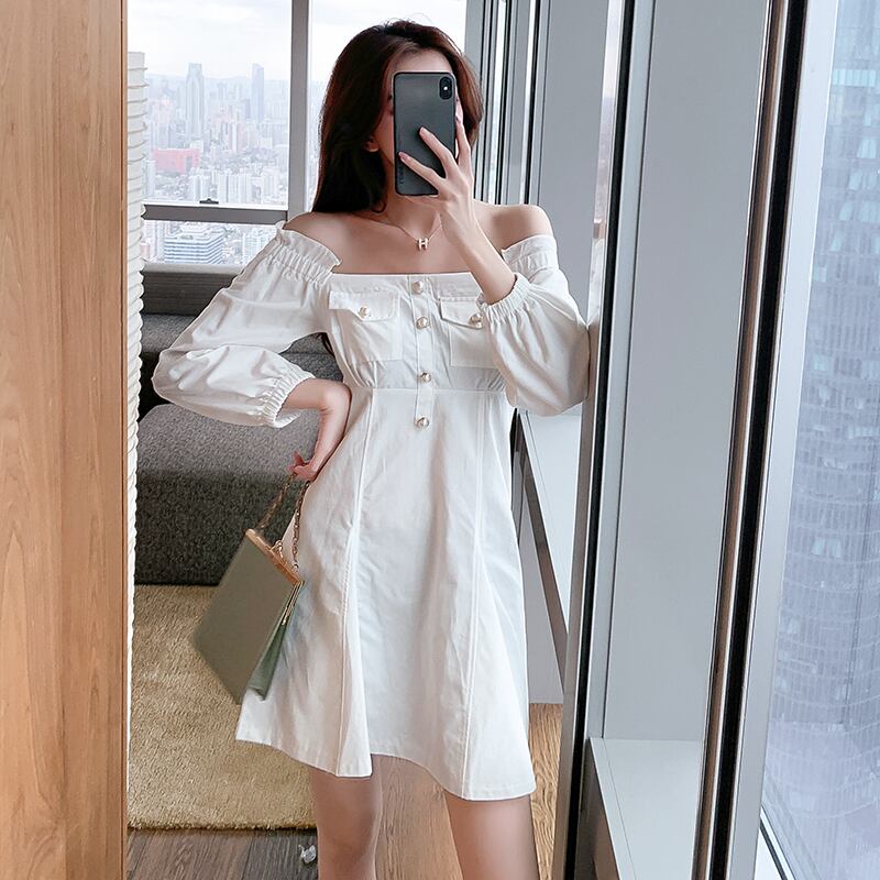 2020年秋新作レディースフレンチレトロパフスリーブワンショルダーワンピースレディース軽くて大人っぽいスタイルのデザインスカート オータム 秋物 yingd66939347235