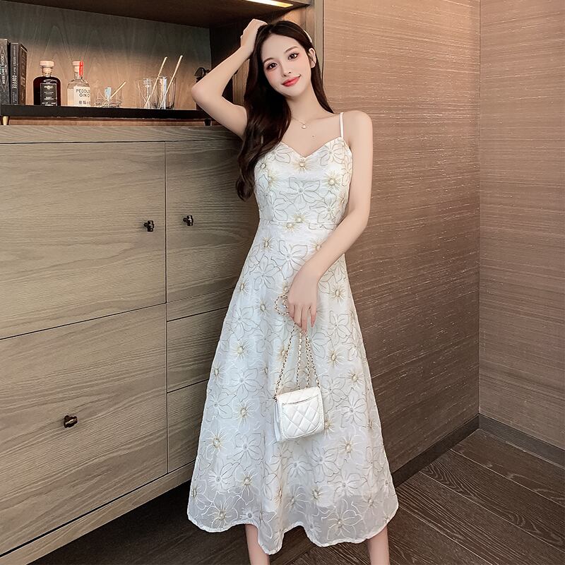 フランスのレトロなベルフラワースカート初恋妖精スリングドレスウエストスリム気質優しい風スリングドレス夏 サマー 夏物 フラワーデザイン yingd81077282365