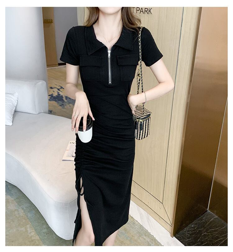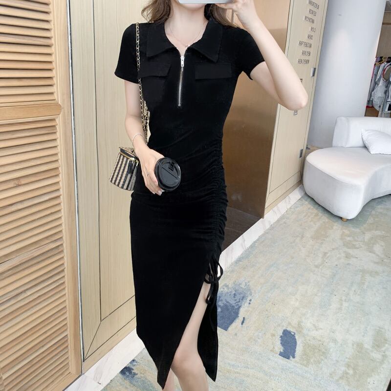 フランスのレトロなヘップバーンスタイルのロングドレス夏のスリムフィットとスリムな気質のデザインハイエンドパッケージヒップ巾着スリットドレス サマー 夏物 yingd62831074314