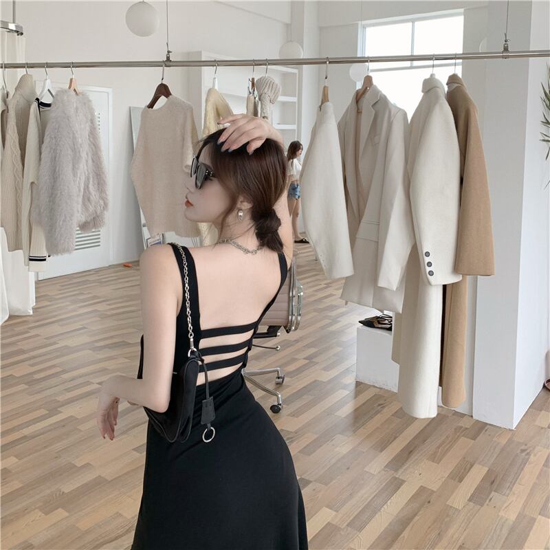 フランスのレトロなサスペンダードレスは薄くて高品質のセクシーな背中の開いた冷たい風のハイエンドのサスペンダードレスの女性です yingd88206564998