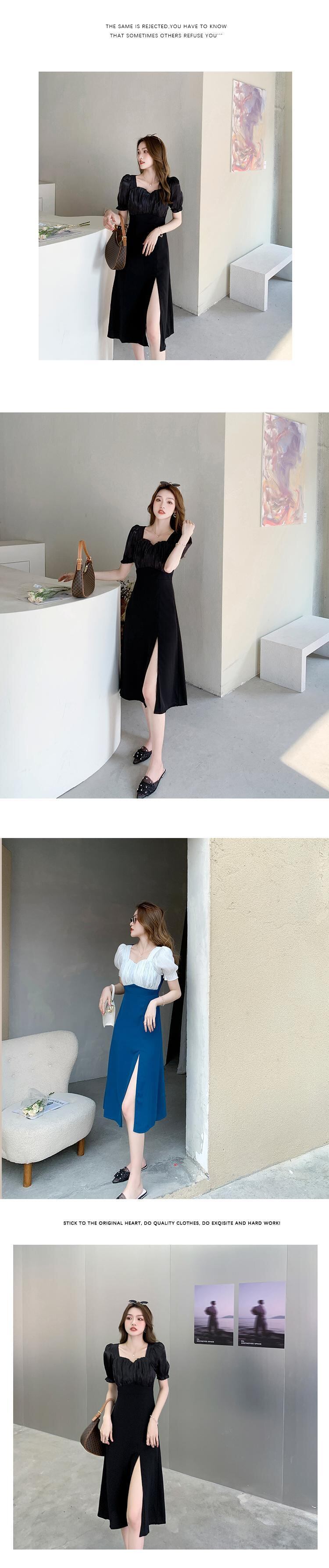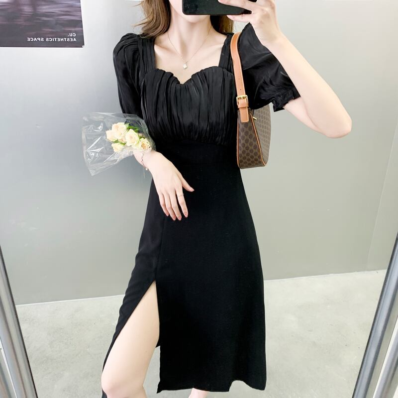 フランスのレトロなファッション年齢を減らす洋風ドレス女性の夏のシックなデザインシフォンステッチセクシーなスプリットロングスカート サマー 夏物 yingd39139765519