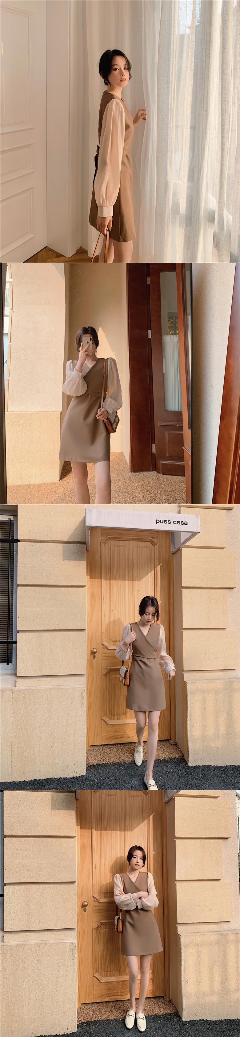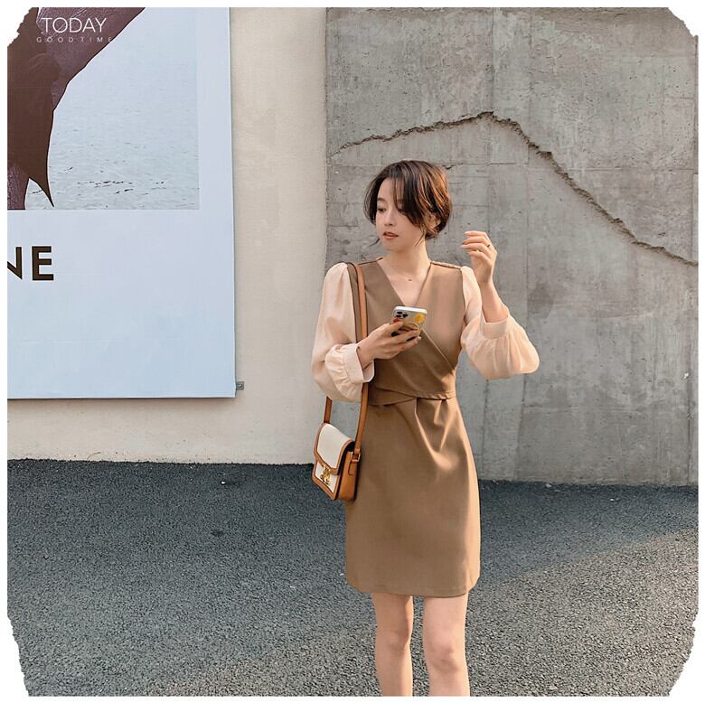 春物2021年新作レディースフレンチニッチウエストスリミング気質デザイン長袖メッシュドレスレディース ロング スプリング yingd94933817488
