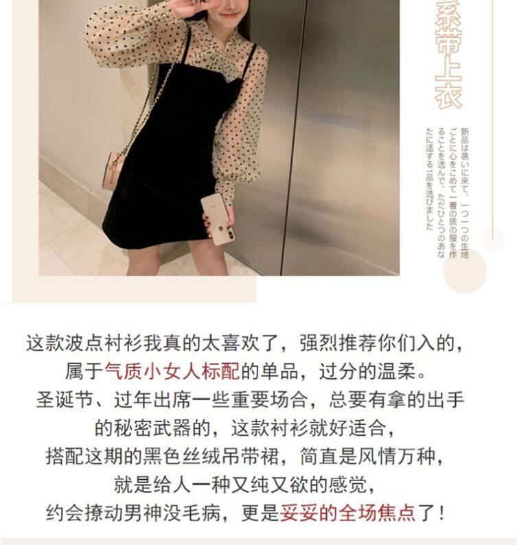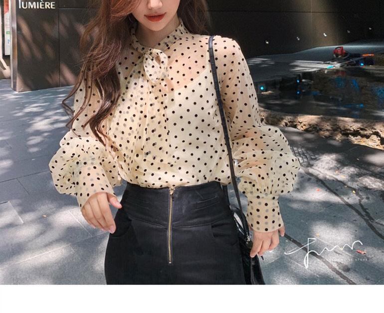 2020年春の新作レトロ香港風水玉メッシュシフォンシャツレディースデザインセンスニッチ長袖シャツトップス ロング スプリング 春物 yingd58218017223